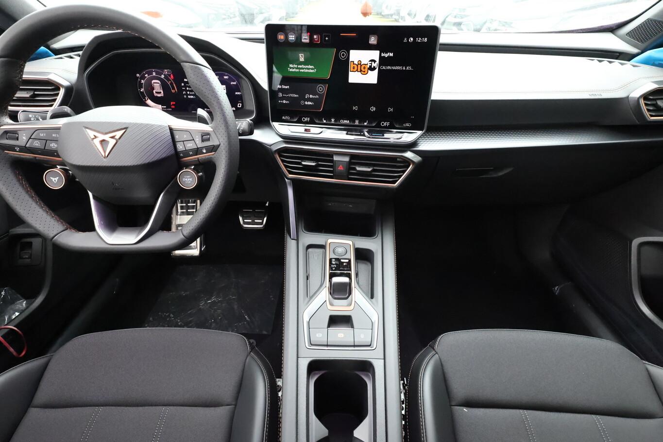 Edge-Paket (Ambiente-Beleuchtung LED / Ambiente-Beleuchtung Smart Ambient Light / Schließ-/Startsystem Kessy Advanced / Heckklappe/-Deckel elektr. betätigt (öffnen + schliessen, sensorgesteuert) / Rückfahrkamera / Diebstahl-Warnanlage mit Innenraumüberwachung und Abschleppschutz), Winter-Paket (Sitzheizung vorn), Anhängerkupplung Vorbereitung, Ablagetaschen an Vordersitzlehnen, Anschlussgarantie (3 Jahre / 100.000 km), Audio-Infotainmentsystem mit Touchscreen Farbbildschirm 12,9", Fahrassistenz-System: Ausweich- und Abbiegeassistent, Induktionsladeschale für Smartphone, Knieairbag vorn, LM-Felgen 8x18, Navigation in Verbindung mit dem Smartphone (über Apple Carplay / Android Auto /...), Navigationssystem Vorbereitung, Pedale Aluminium-Design, Reifen 245/45 R18, Schadstoffarm nach Abgasnorm Euro 6e (EU6 EA), Sprachsteuerungs-System, Tagfahrlicht, Wegfahrsperre elektrisch, Licht- und Sicht-Paket (Innenspiegel mit Abblendautomatik / Einschaltautomatik für Fahrlicht / Licht- und Regensensor / Lichtassistent (Coming Home, Leaving Home)), Voll-LED-Paket (Leuchtweitenregelung automatisch / Heckleuchten Voll-LED mit dynamischem Lichtband (Infinite Light) / Nebelscheinwerfer LED mit Abbiegelicht / Scheinwerfer Voll-LED), Abdeckkappen Außenspiegel Schwarz, Dachhimmel schwarz, Einstiegsleisten vorn beleuchtet, Fensterzierleisten schwarz, Gepäck-/Laderaumboden doppelt, Karosserie: 5-türig, Kombiinstrument digital (virtual cockpit), Lendenwirbelstütze Sitz vorn links, verstellbar, Lendenwirbelstütze Sitz vorn rechts, verstellbar, Leseleuchten hinten LED, Leseleuchten vorn LED, Mild-Hybrid 110 kW (Motor 1,5 Ltr. - 110 kW eTSI), Otto-Partikelfilter (OPF), Parkbremse elektrisch mit Auto-Hold-Funktion, Radioempfang digital (DAB+), Sitz vorn links höhenverstellbar, Sitz vorn rechts höhenverstellbar, Sitzbezug / Polsterung: Stoff/Kunstleder schwarz (Sharp Textil), Sonnenblende links mit Spiegel (beleuchtet), Sonnenblende rechts mit Spiegel (beleuchtet), Steckdose 230V im Gepäckraum, Warnanlage für Sicherheitsgurt-System, Full Link (MirrorLink, Apple CarPlay und Android Auto), USB-Ladeanschlüsse (2-fach, Typ C) für 2.Sitzreihe, USB-Schnittstelle vorn (2-fach, Typ C), Antriebsart: Frontantrieb, Elektron. Differentialsperre (XDS), Getriebe 7-Gang - Doppelkupplungsgetriebe DSG, Klimaanlage Climatronic 3-Zonen, Airbag Beifahrerseite abschaltbar, Airbag Fahrer-/Beifahrerseite, Fensterheber elektrisch vorn + hinten mit Komfortschaltung, Isofix-Aufnahmen für Kindersitz an Beifahrersitz und Rücksitz (inkl. i-Size-Kindersitze), Kopf-Airbag-System, Mittelarmlehne vorn, Rücksitzlehne geteilt/klappbar mit Mittelarmlehne und Durchladeeinrichtung, Seitenairbag, Seitenairbag vorn mitte (Central Airbag), Seitenscheiben ab 2.Sitzreihe und Heckscheibe dunkel getönt (Privacy Glass), Fahrassistenz-System: Fahrprofilauswahl (CUPRA Drive Profile), Dachreling schwarz, hochglänzend, Wärmeschutzverglasung, Fahrassistenz-System: Autom. Distanzregelung (ACC / PCC) mit vorausschauender Geschw.-Regelung, Fahrassistenz-System: Verkehrszeichenerkennung, Notrufsystem, Lenkrad heizbar (CUPRA Supersport, Leder) mit Multifunktion und Schaltfunktion, Außenspiegel elektr. verstell-, heiz- und anklappbar mit Spiegelabsenkung und Welcome Light, Fahrassistenz-System: Fernlichtassistent, Einparkhilfe vorn und hinten, Fahrassistenz-System: Müdigkeitserkennung, Fahrassistenz-System: Spurhalteassistent, Fahrassistenz-System: Umfeldbeobachtungssystem (Front assist) mit City-Notbremsfunktion, Reifenkontroll-Anzeige, Start/Stop-Anlage