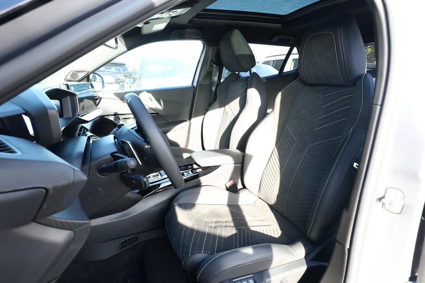 Alcantara-Paket (Lendenwirbelstütze Sitz vorn links, elektr. verstellbar / Sitz vorn links mit Einstiegs- und Massagefunktion / Sitzbezug / Polsterung: Alcantara / Kunstleder / Sitz vorn links elektr. verstellbar / Sitzheizung vorn), Schiebe-/Hebedach elektrisch (Glas), Ausstattungs-Paket: Vision, Navigation und Drive Assist (Induktionsladeschale für Smartphone / Multifunktionsanzeige mit Farbdisplay (DGT10CHD) / Navigationssystem i-Connect Advanced / Fahrassistenz-System: Aktiver Notbrems-Assistent (Active Safety Brake Plus) / Adaptive Geschwindigkeitsregelanlage (ACC) / Fahrassistenz-System: Autom. Distanzregelung (ACC inkl. Stop&Go-Funktion) / Rückfahrkamera mit 360° Umgebungsansicht / Peugeot Connect-Box / SOS-Taste (Notruf für Lokalisierung Fahrzeug) / Außenspiegel mit Umfeldleuchte / Fahrassistenz-System: Totwinkel-Assistent (SAM) / Fahrassistenz-System: aktiver Spurpositionierungsassistent), LM-Felgen 7x18 (Evissa, zweifarbig, schwarz), 4 Verzurrösen im Fond, 6 Lautsprecher, Außengriff in Wagenfarbe, BT-Freisprechanlage, Einschaltautomatik für Fahrlicht, Fensterheber elektr. hinten, Klimaautomatik, Kombiinstrument digital, Lenkrad (Leder), MirrorLink (Android Auto, Apple CarPlay), Mittelarmlehne vorne, Radioempfang digital (DAB), Reifen 215/55 R18, USB-Schnittstelle, Rücksitzlehne geteilt/klappbar (Rücksitzbank klappbar 1/3-2/3), Seitenscheiben hinten und Heckscheibe dunkel getönt (Heckscheibe getönt), Zentralverriegelung / Startanlage Keyless System (Startanlage Keyless System), Außenspiegel elektr. anklappbar (Außenspiegel anklappbar / Außenspiegel mit Umfeldleuchte), Scheinwerfer Full-LED (Leuchtweitenregelung elektrisch), Einparkhilfe vorn und hinten (Einparkhilfe hinten), Ambiente-Beleuchtung, Außenspiegel mit Abdeckkappen schwarz, Dachfarbe schwarz, Frontscheibe geräuschdämmend, Heckscheibe heizbar, Innenspiegel mit Abblendautomatik, Karosserie: 5-türig, Otto-Partikelfilter (GPF), Parkbremse elektrisch, Pyrotechnischer Gurtstraffer, Radstand 2605 mm, Sitze vorn höhenverstellbar, Warnanlage für Sicherheitsgurte, Anti-Blockier-System (ABS), Fahrassistenz-System: Aktiver Notbrems-Assistent (Active Safety Brake), Antischlupfregelung (ASR), Antriebsart: Frontantrieb, Elektron. Stabilitäts-Programm (ESP, Bosch), Getriebe Automatik - Doppelkupplungsgetriebe (6-Stufen, Hybrid), Airbag Beifahrerseite abschaltbar, Airbag Fahrer-/Beifahrerseite, Fensterheber elektr. vorn, links mit Impulsgeber, Isofix-Aufnahmen für Kindersitz, Kopf-Airbag-System, Kopf-Airbag-System hinten, Seitenairbag vorn, Zentralverriegelung mit Fernbedienung, Fahrmodusschalter, Dachreling schwarz, Fahrassistenz-System: Berganfahrhilfe, Fahrassistenz-System: Verkehrszeichenerkennung, Lenkrad mit Multifunktion, Servolenkung elektrisch, Außenspiegel elektr. verstell- und heizbar, beide, Fahrassistenz-System: Fernlichtassistent, Scheibenwischer mit Regensensor, Tagfahrlicht LED, Fahrassistenz-System: aktiver Spurassistent (Lenkunterstützung), Fahrassistenz-System: Müdigkeitserkennungs-Sensor, Reifendruck-Kontrollsystem